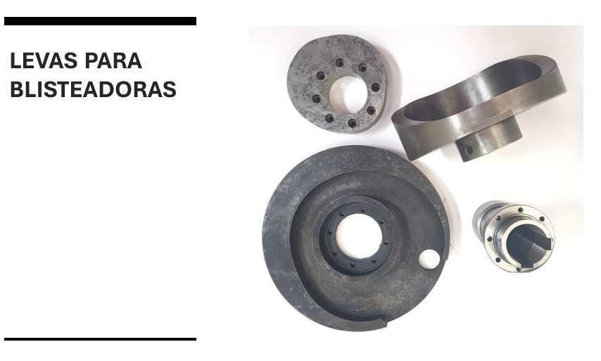 - Levas, fabricadas a la medida, para estaciones de formado, sellado, avance y corte de diversos tipos de blisteadora.