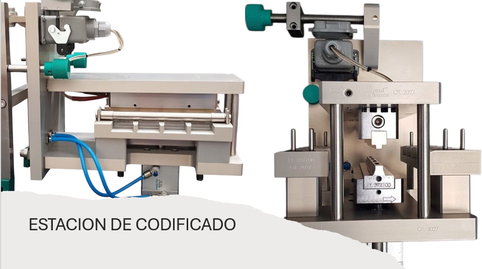 - Estaciones de Codificado, con accionamiento neumático que independizan esta operación de la estación de sellado de su blisteadora, lográndose una estampada nítida en el blíster por el lado del material de termoformado.